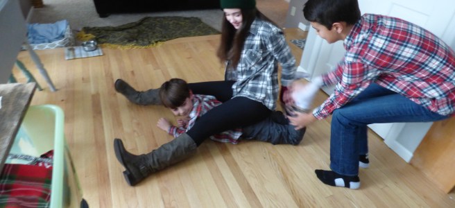 Here we are 5 minutes later. Older brother throws younger brother’s frisbee into the water. Cue innocent sister laughing. Cue mom and dad screaming at kid to go retrieve frisbee. Yeah…we know it’s cold. Next time, don’t be an idiot and throw something in the lake.